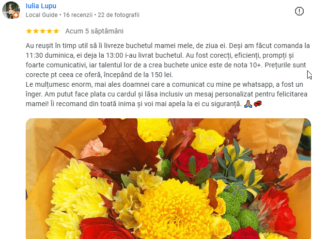 Tu alegi buchetul și noi îl livrăm pentru tine, gratis în Focșani!